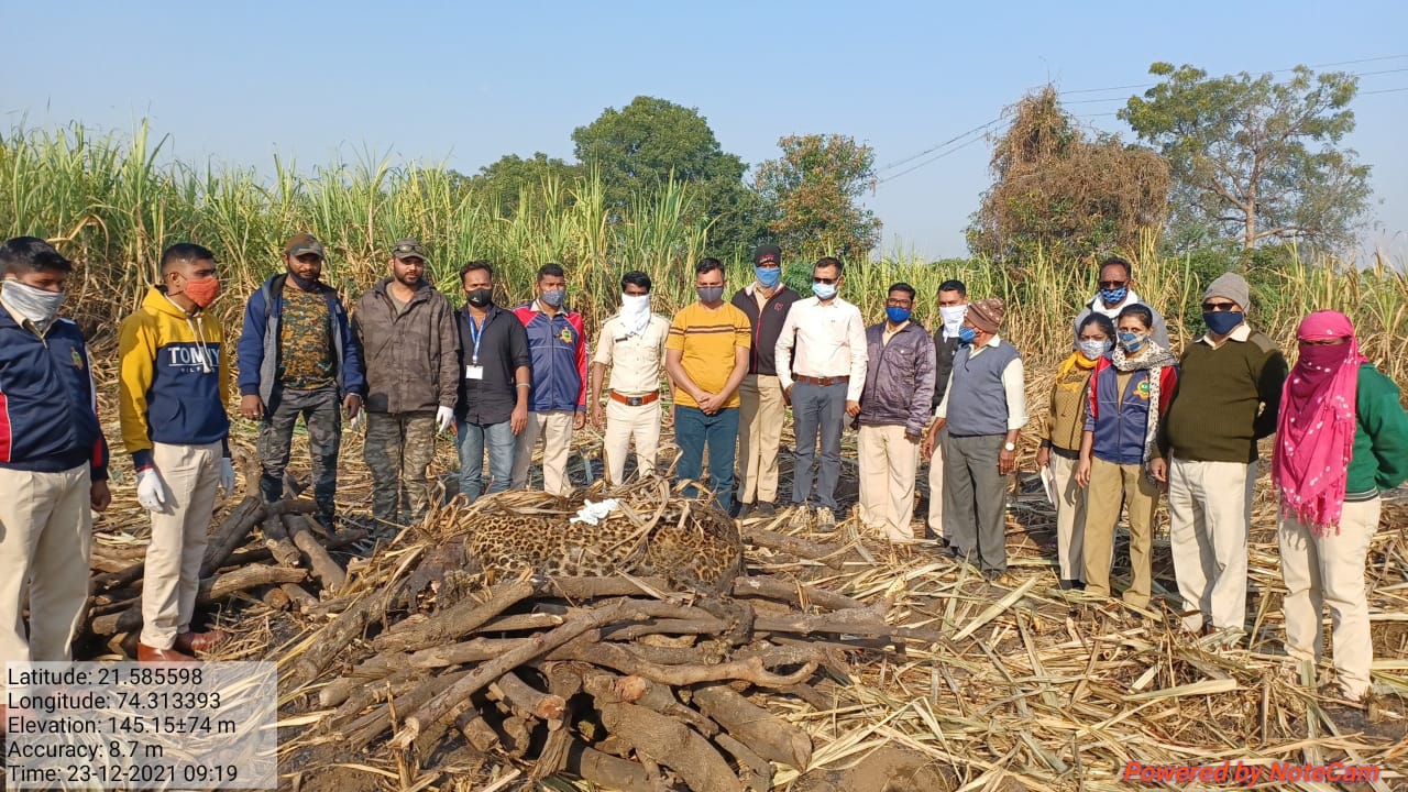 तळोदा तालुक्यातील शेतकरी भगवान देवराम शिंदे यांची ऊस तोड सुरू आहे. ऊस तोडीसाठी ऊस तोड कामगार बुधवारी दुपारी गेले होते.त्यांना दुर्गंधी आल्याने थोड्या पुढे मेलेला,कुजलेल्या मृत बिबट्याचे शव आढळून आले होते त्यामुळे त्यांनी वनविभागाला कळविल्या नंतर अधिकारी,कर्मचारी घटना स्थली दाखल होवून कालच पंचनामा केला.त्यानंतर गुरुवारी दुपारी अधिकारी,कर्मचारी पुन्हा तेथे जावून मृत बिबात्यावर अंत्य संस्कार केले.तत्पूर्वी तळोदा येथील पशू वैद्यकीय अधिकारी डॉ विश्वास नवले यांनी मृत बिबट्याचे शव विच्छदन केले होते.यावेळी मेवासी वन कार्यालयाचे उपवन संरक्षक गांगोडे, वन्य जीवरक्षक विवेक देसाई,सागर निकुंबे, वनक्षेत्र पाल निलेश रोडे, वणपाल अर्चना लोहार,वणपल वासुदेव माळी, विरर्सींग पावरा,गिरिधर पावरा,भावना जाधव,एस ओ नाईक, राजा पावरा, एल टी पावरा,आर जे शिरसाठ,नामदेव डोंगरे आदी कर्मचारी उपस्थित होते.