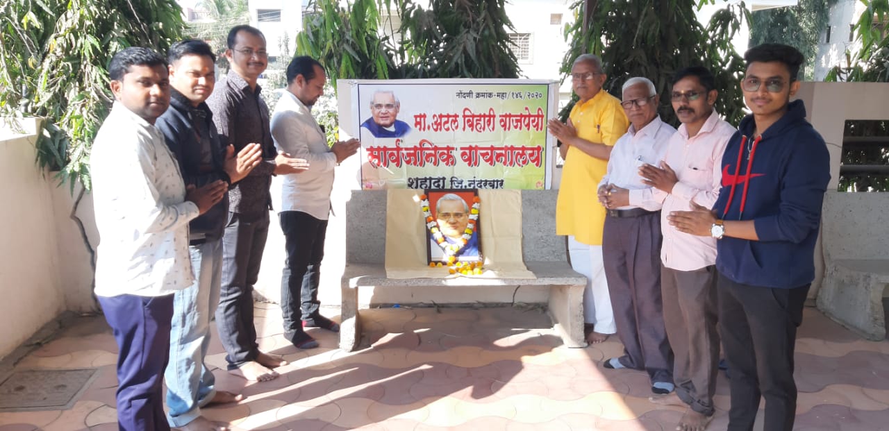शहादा येथील अटल बिहारी वाजपेयी सार्वजनिक वाचनालयाचा प्रथम वर्धापन दिन आणि भारतरत्न अटल बिहारी वाजपेयी यांच्या जयंती निमित्ताने आदरांजली अर्पण करण्यात आली.