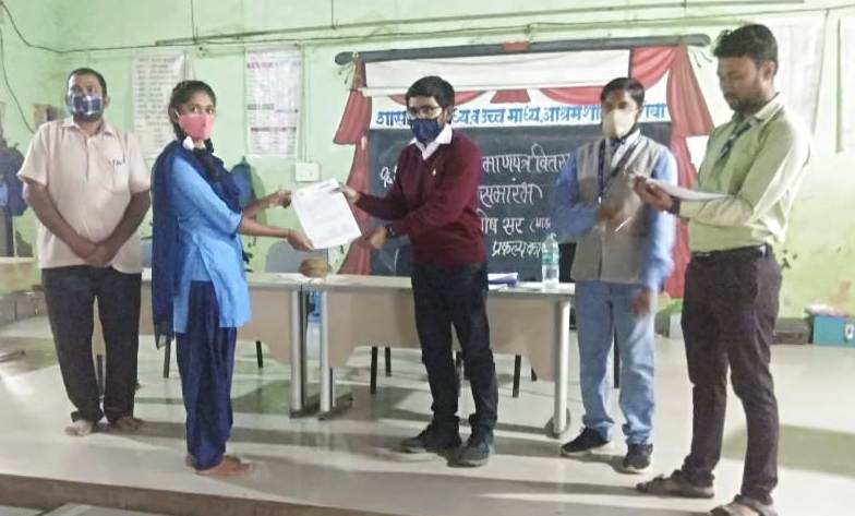 मोरांबा, ता. अक्कलकुवा येथील शासकीय माध्यमिक व उच्च माध्यमिक आश्रमशाळेत प्रकल्प अधिकारी तथा सहाय्यक जिल्हाधिकारी डॉ. मैनक घोष यांच्या हस्ते 70 विद्यार्थ्यांना जात प्रमाणपत्र व 100 विद्यार्थ्यांना आधार कार्ड दुरुस्ती करुन वाटप करण्यात आले.
