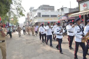 कोरोना नियमांचे पालन करून नविन वर्षानिमित्त नंदुरबार जिल्हा पोलीस बँड पथकातील पोलीसांनी बॅड वाजविण्याचा कार्यक्रम करुन नागरीकांना शुभेच्छा दिल्या . त्याच बरोबर नंदुरबार जिल्हा पोलीस अधीक्षक पी . आर . पाटील व अपर जिल्हा पोलीस अधीक्षक  विजय पवार यांचे प्रमुख उपस्थितीत नंदुरबार शहरात बँड पथकासह संचलन करण्यात आले . सदरचा कार्यक्रम योग्य ती परवानगी घेऊनच आयोजीत करण्यात आला होता .  अमृत महोत्सवी भारत  या उपक्रमाचे औचीत्य साधून नविन वर्षांच्या शुभेच्छांसह ४०० नागरीकांना पोलीसांतर्फे मास्क देखील वाटप करण्यात आले.तसेच नागरीकांना शासनाकडून वेळोवेळी प्राप्त होणार्‍या मार्गदर्शक सूचनांचे महत्व सांगून कोरोना विषाणूचा प्रादुर्भाव पून्हा एकवेळा झपाट्याने वाढत असून काळजी घेण्याच्या सूचना देखील देण्यात आल्या . सदर कार्याक्रमाच्या वेळी नंदुरबार जिल्हा पोलीस अधीक्षक पी . आर . पाटील व अपर जिल्हा पोलीस अधीक्षक विजय पवार , उप विभागीय पोलीस अधिकारी नंदुरबार विभाग  सचिन हिरे , नंदुरबार तहसिलदार  भाऊसाहेब थोरात , स्थानिक गुन्हे शाखेचे पोलीस निरीक्षक  रविंद्र कळमकर , जिल्हा विशेष शाखेचे पोलीस निरीक्षक भरत जाधव , नंदुरबार शहर पोलीस ठाण्याचे पोलीस निरीक्षक  किरणकुमार खेडकर , नंदुरबार तालुका पोलीस ठाण्याचे पोलीस निरीक्षक राहुल पवार , उपनगर पोलीस ठाण्याचे पोलीस निरीक्षक  नरेंद्र भदाणे , शहर वाहतुक शाखेचे पोलीस निरीक्षक राजेंद्र भावसार , इतर अधिकारी अमंलदार व जिल्ह्यातील प्रतिष्ठीत नागरिक उपस्थित होते .