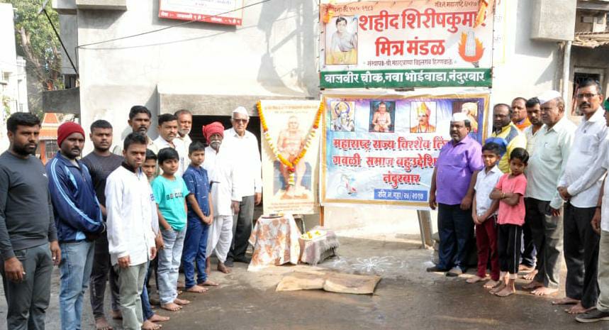 महाराष्ट्र राज्य वीरशैव लिंगायत गवळी समाज बहुउद्देशीय संस्थेच्या नंदुरबार शाखेतर्फे आयोजित संतश्री सिदाजी आप्पा देवर्षी यांच्या जयंतीनिमित्त प्रतिमेचे पूजन गवळी समाजाचे ज्येष्ठ नागरिक शतकवीर भीमाजी यादबोले यांच्या हस्ते करण्यात आले. तर सिदाजी आप्पांची आरती सेवानिवृत्त प्राचार्य देमाजी लगडे यांनी केली. गवळी समाजाची ओळख असलेले भस्म (ईबीत) प्रत्येकाच्या कपाळी लावण्यात आले. शंख निनाद करीत आरती नंतर उपस्थित समाज बांधवांना प्रसाद वाटप करण्यात आले. याप्रसंगी देमाजी लगडे यांनी संतश्री सिदाजी आप्पा देवर्षी यांच्या जीवन कार्याची माहिती दिली. तसेच गवळी समाजातील युवकांनी मांसाहार व मद्यसेवना पासून लांब राहण्याचे आवाहन केले. प्रतिमापूजन कार्यक्रमास प्रकाश घुगरे, राजेंद्र लगडे, हेमंत नागापुरे ,आनंदा घुगरे ,सुशील गोडळकर, पिरन लगडे, हेमराज लगडे, प्रा. एकनाथ हिरणवाळे, पांडुरंग यादबोले, विशाल हिरणवाळे, प्रशांत गवळी, ईश्वर घुगरे तसेच हिमांशू गवळी, प्रणव गेनाप्पा, नंदू गवळी, प्रथम गवळी, साई गवळी आदीसह सर्व समाज बांधव उपस्थित होते. कार्यक्रमाचे संयोजन महाराष्ट्र राज्य वीरशैव लिंगायत गवळी समाज बहुउद्देशीय संस्थेचे जिल्हाध्यक्ष गोपाल लगडे, जिल्हा कार्याध्यक्ष महादू हिरणवाळे यांनी केले.