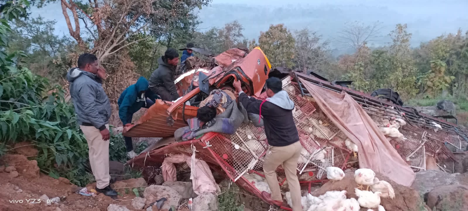 पोलिस सूत्रांकडून मिळालेल्या माहितीनुसार कोंबड्यांनी भरलेला ट्रक सुरत शहराच्याच्या दिशेने निघाला होता नवापुर तालुक्यातील चरणमाळ घाट कोंबड्यांनी भरलेला ट्रक (क्र. डी.जे.05, बी.वाय. 6115 ) तीव्र वळण रस्त्यावर आला असता ट्रक चालकाने ट्रक चा वेळ कमी करण्यासाठी ब्रेक दाबला मात्र ट्रकचा ब्रेक निकामी झाल्याने चालकाचे सदर ट्रक वरील नियंत्रण सुटून तो रस्त्यावर असलेल्या संरक्षक भिंतीवर जाऊन आदळला या अपघातात ट्रक चालक हैदर अली मोहम्मद अली नीलगर ( वय 39) रा. अहमदाबाद हा किरकोळ जखमी झाला असून या अपघातात ट्रक आणि कोंबड्यांचे मात्र मोठे नुकसान झाले आहे.