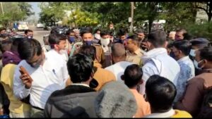 नंदूरबार तालुक्यातील अमळथे येथे विद्युत खांबावर चढलेल्या युवकाचा विद्युत तारांचा स्पर्श होऊन मृत्यू झाल्याची घटना घडली आहे.दरम्यान काल दि.१४ जानेवारी रोजी दुपारी ३.१५ वाजेक्या घटनेनंतर पोलिसांच्या उपस्थितीत ७ तासानंतर रात्री १०.३० वाजेच्या सुमारास युवकाचा मृतदेह पोल वरून खाली काढण्यात आला.आज सकाळ पासून संतप्त नातेवाईकांनी मृतदेह घेण्यास नकार देत जिल्हा रुग्णालयाच्या आवारात उभे आहेत.दरम्यान रुग्णालयात महावितरण कर्मचारी, खासदार व आमदार चर्चेसाठी दाखल झाले असून १२.३० वाजेपर्यंत त्यांची चर्चा सुरू होती.