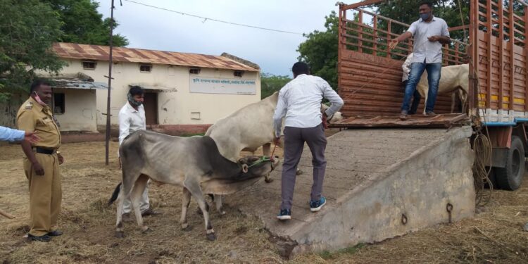 पोलीस सूत्रांनी दिलेल्या माहितीनुसार सविस्तर वृत्त असे की, तळोदा येथील कृषी उत्पन्न बाजार समितीच्या आवाराच्या आडोशाला ३६ गोवंश कत्तलीच्या इराद्याने पोलिसांना मिळाली. त्यानुसार पोलिसांनी थेट सापळा रचत बाजार समितीत धडक मारली. तेव्हा हातोडा रस्त्यावरील बाजार समितीच्या एका कोपर्यात कुलूप लावलेल्या लोखंडी जाळीच्या दरवाजाच्या आत ३६ गोवंशीय बैल जातीचे जनावरे कत्तलीच्या इराद्याने दावणीला बांधलेले दिसून आले. या जनावरांना कत्तलीसाठी खरेदी करून ते पुढे विक्रीच्या इराद्याने संबंधित व्यापार्यांनी आपल्या कबज्यात ठेवले होते. या प्राण्यांना चारा, पाणी, व निवार्या व्यवस्था न करता मोकळ्या मैदानात आडोशाला बांधलेले दिसून आले. त्यानंतर पोलिसांनी लागलीच दोघा पंचांना बोलवून त्यांच्या समक्ष पंचनामा करण्यात आला. जनावरांबाबत पंचांसमोर विचारपूस केली असता रियाज खान रजाक कुरेशी रा. तळोदा व रसूल रहेमान कुरेशी रा. अक्कलकुवा यांची असल्याचे सांगण्यात आले. त्यामुळे या दोघ व्यापार्यांविरोधात तळोदा पोलिसांत गुन्हा दाखल करण्यात आला आहे. या दोघ व्यापार्यांनी प्रत्येकी अठरा अठरा गोवंश त्यांच्या कबज्यात ठेवली होती. या ३६ जनावरांची किंमत साधारण ७ लाख रुपये असल्याचे पोलसानी सांगितले ही कारवाई पोलीस निरीक्षक पंडित सोनवणे यांच्या मार्गदर्शनाखाली व सहाय्यक पोलीस निरीक्षक अविनाश केदार, पो उप अभय मोरे, पोलीस नाईक विनोद नाईक, युवराज चव्हाण, राजढर जगदाळे, गणेश सोनवणे, मधुकर राऊत, पिंटू अहिरे आंनदा पाटील , स. फौ गोसावी , बापू बागुल, विशाल नागरे यांच्या पथकाने केली आहे. दरम्यान पो हे दिलीप भाईदास साळवे यांच्या फिर्यादिवरून पोलीस ठाण्यात दोघा व्यापर्यांविरुद्ध गुन्हा दाखल करण्यात आला आहे.
